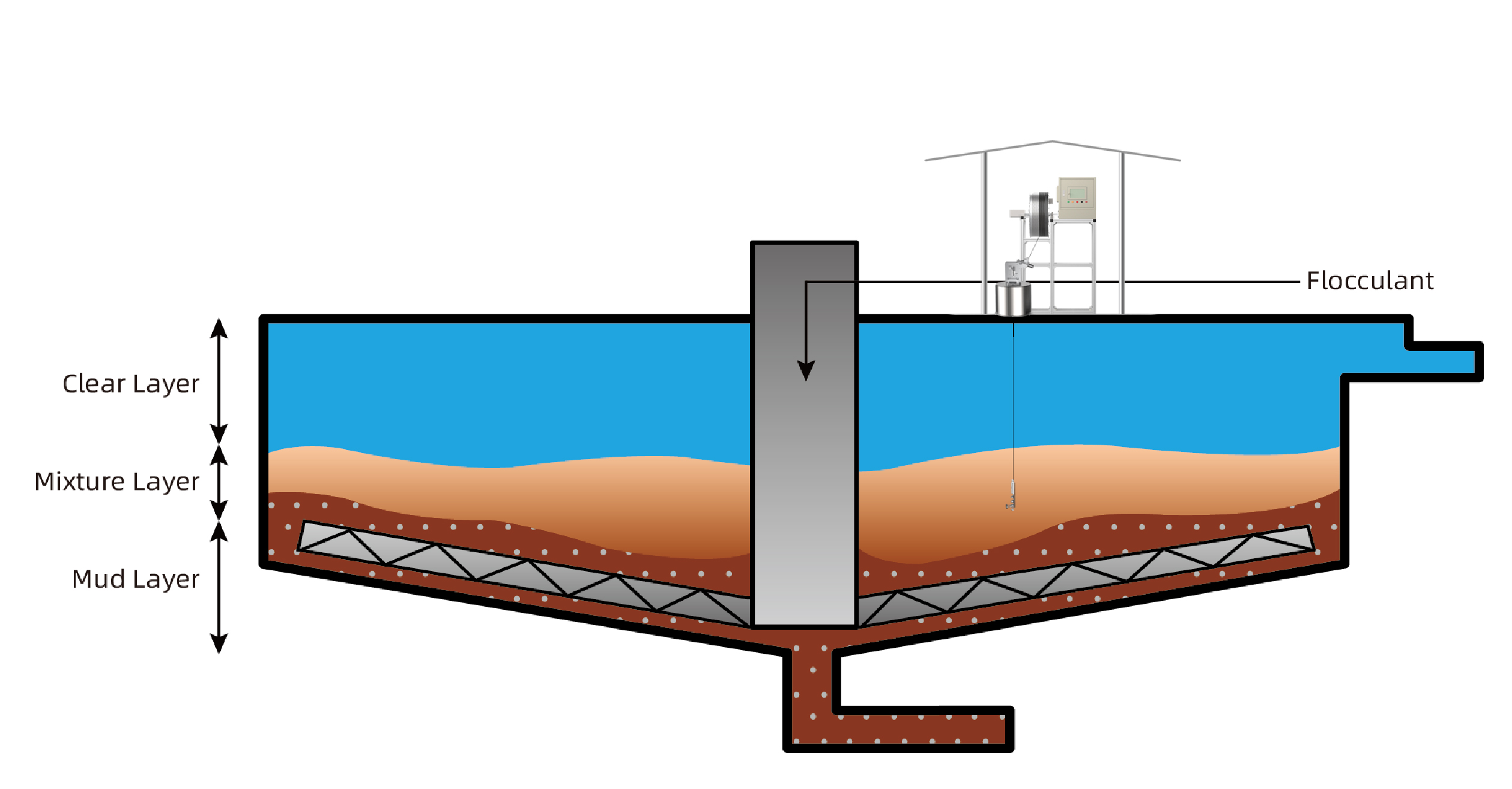 Input measurement: The detection probe is placed inside the thickener, and the emitted ultrasonic signal directly interacts with the various layers of media inside the thickener, without being affected by tank scarring.