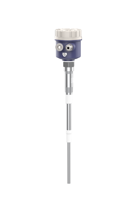 The electrode rod of the RF admittance level switch is composed of a measuring electrode, a shielding electrode, and a grounding electrode. The three electrodes are isolated by insulating materials. When the material touches the measuring electrode, the admittance between the measuring electrode and the grounding electrode increases. Therefore, the level of the material can be determined by the change in admittance. The shielding electrode is placed between the measuring electrode and the grounding electrode, and its signal waveform is identical to the waveform of the measuring electrode, but the two are completely isolated Independently, it can suppress the admittance changes between the measuring electrode and the grounding electrode caused by material adhesion when the electrode rod itself experiences material adhesion, thus eliminating false alarms during material adhesion.