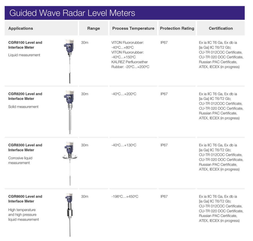 Compared with ultrasonic principle instruments, guided wave radar level meters are not affected by pressure, vacuum, temperature changes, inert gases, smoke, steam, and other environmental factors, and their measurement results are stable and reliable. It can work with a maximum temperature of 400 ℃ and a maximum pressure of 40Mpa.
